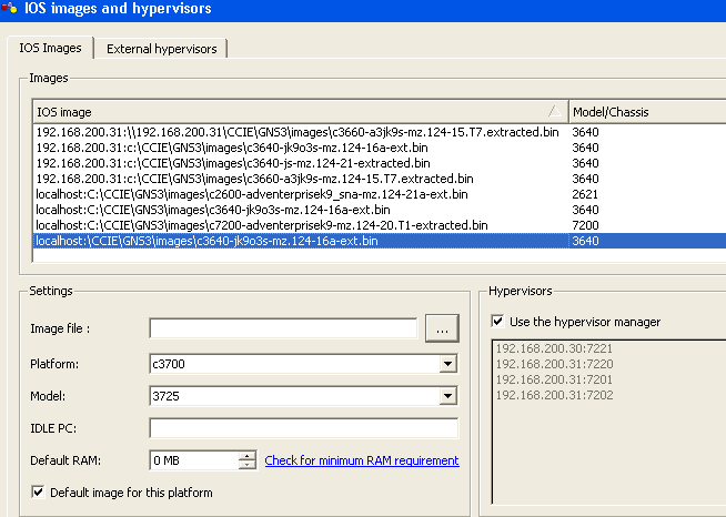 Select; Edit IOS images and hypervisor and click on “External Hypervisor” tab