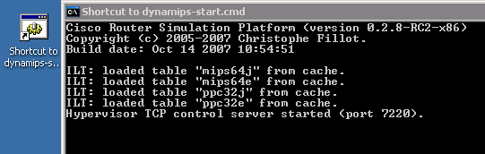 Recommend creating a shortcut for “dynamips-start.cmd” to on your desktop, because your going to use this quite frequently because everything